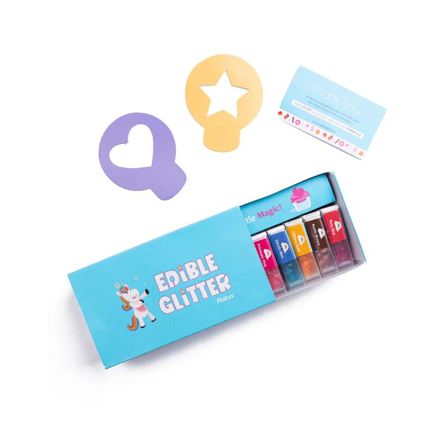 A whole new and innovative way to offer high-quality and effective means to decorate confectionaries, beverages, ice cream and more. This edible product can be used as a form of topping, inclusion and colour changing arrangement. Besides that, you can get as creative as you want with Edible Glitter depending on your application. These FSSAI certified magical sparkles and flakes are 100% edible and are guaranteed to make your product shine!